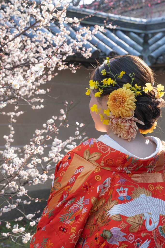 和装ウエディング撮影プラン 2026.01.20和装ウエディング前撮り 和の美しさをまとい、今を彩る特別な一日 凛とした白無垢、華やかな色打掛。 伝統と気品が織りなす装いは、 おふたりをいっそう美しく輝かせます。 四季折々の景色の中で、心惹かれるその場所で、 装いと景色がやわらかく響き合うように。 調和の美しさが際立つ一日を、 最適なロケーションとともにお届けいたします。 和装ウエディング撮影プラン 和装1着プラン 198,000円 プランに含まれるもの ・ロケ地1ヵ所/データ150カット以上 ・新郎新婦衣装(白無垢or色打掛/紋付羽織袴) ・新郎新婦着付け・ヘアメイク ・生花ヘッドドレス(髪飾り) ・撮影アシスト(振付け)/お引上げ ・撮影用移動車(2名様まで乗車可能) 和装2着プラン 238,000円 プランに含まれるもの ・ロケ地1ヵ所/データ200カット以上 ・新郎新婦衣装(白無垢+色打掛/紋付羽織袴) ・新郎新婦着付け・ヘアメイク ・生花ヘッドドレス(髪飾り) ・撮影アシスト(振付け)/お引上げ ・撮影用移動車(2名様まで乗車可能) ・ヘアチェンジあり ・生花ヘッドドレス(2パターン) 和装+洋装プラン 284,000円 プランに含まれるもの ・ロケ地2ヵ所/データ250カット以上 ・新郎新婦衣装(白無垢or色打掛/紋付羽織袴) ・新郎新婦衣装(ドレス/タキシード) ・新郎新婦着付け・ヘアメイク ・生花ヘッドドレス(髪飾り) ・撮影アシスト(振付け)/お引上げ ・撮影用移動車(2名様まで乗車可能) ・ヘアチェンジあり ・生花ヘッドドレス(2パターン) オプションメニュー オリジナルアルバム 58,000円~ RURIIIROでは、高品質アルバムブランド「アスカブック」の商品を採用しています。 撮影の世界観や残したい想いに合わせて選べる、6種類のラインナップをご用意しております。 撮影の美しさと想いを重ねながら、丁寧に仕上げていく一冊です。 ※価格は全て税込みです。 花嫁の美しさを最大限に引き立てるRURIIIROオリジナル撮影プラン ―生花ヘッドドレス― 季節ごとに咲く花、その瞬間だけの出逢い。 生花ならではの美しさとともに、あなただけの特別な装いを。 ―撮影― 撮影が苦手な方もご安心ください。 自然な笑顔やふとした仕草の美しさを引き出せるよう、やさしくリードいたします。 着物姿を美しく整える“和装振付け”の技術を活かし、撮影のそばで寄り添いながら、大切な瞬間をサポートいたします。 撮影後は、カメラマンが一枚一枚を丁寧に整え、美しくお仕上げして、お届けいたします。 ―プランニング― 撮りたいイメージややってみたいことなど、おふたりの想いを丁寧にお伺いいたします。 その後、いくつかの撮影プランをご提案しながらご一緒にプランニングを進めてまいります。 各種手配の代行から当日のスケジュール管理まで、トータルでコーディネートいたします。 あなたに寄り添うカスタムプラン ご希望のカメラマンやヘアメイクさんをセレクトしたい方へ、自由と安心を兼ね備えた、オリジナルの撮影プランです。 クリエイターのセレクトは自由に。各種手配の代行やスケジュール管理、皆さまとの共有までをRURIIROが一括でサポートいたします。 セレクトされた該当分は、撮影プラン料金より差し引いてご案内いたします。 お気軽にご相談くださいませ。 Post Share Line RSS Pin it note 和装ウエディング前撮り 花嫁, 白無垢, 色打掛, 着付け師 成人式撮影プラン 和装撮影で大切にしていること